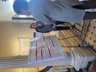 CRCs Lynn Eickholt (left) and Theodore Kapogiannis (right) presented posters on their research at the Health Equity Poster Session in April 2025.